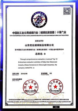 中國輕工業日用玻璃行業(玻璃包裝容器)十強企業